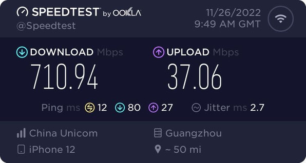 这速度还可以,联通600M宽带。