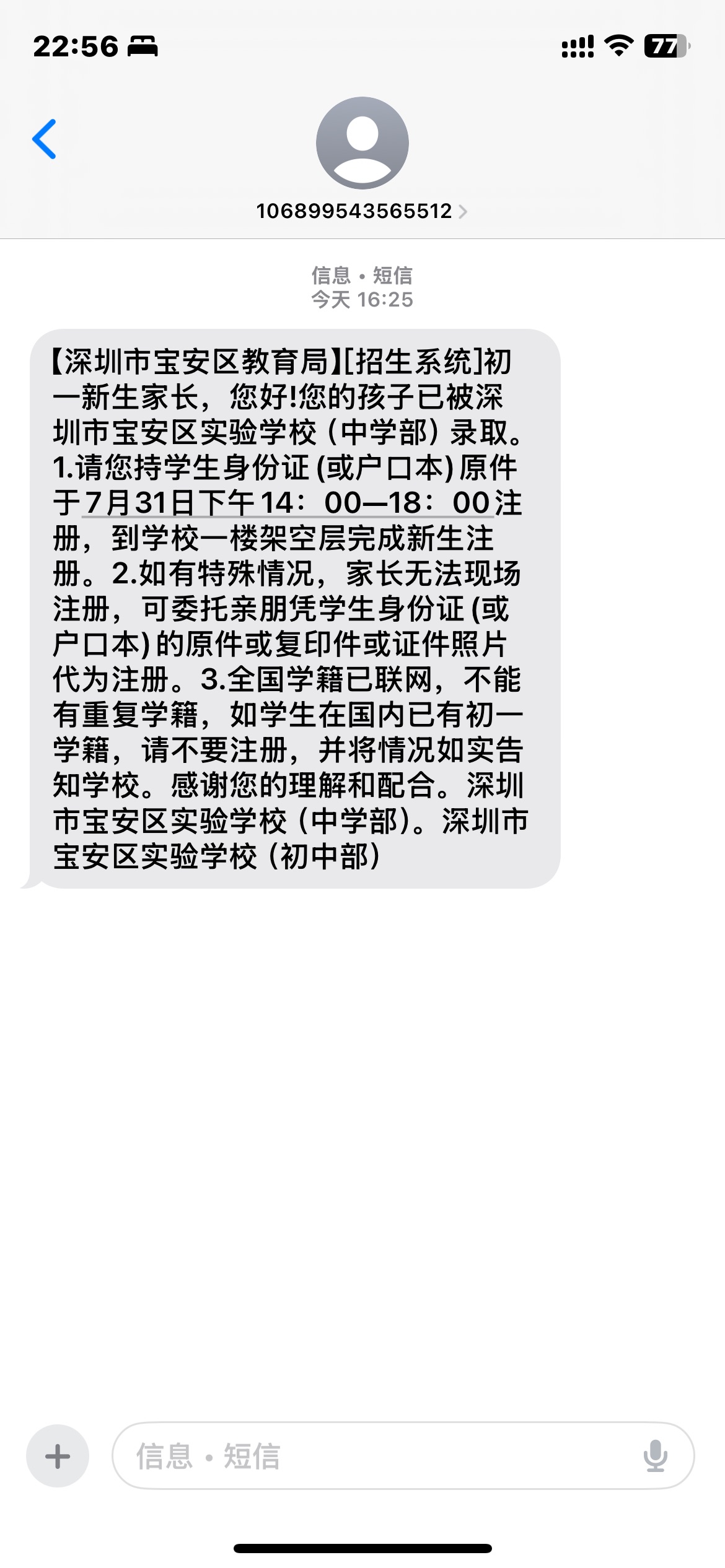 小树的初中确认了。