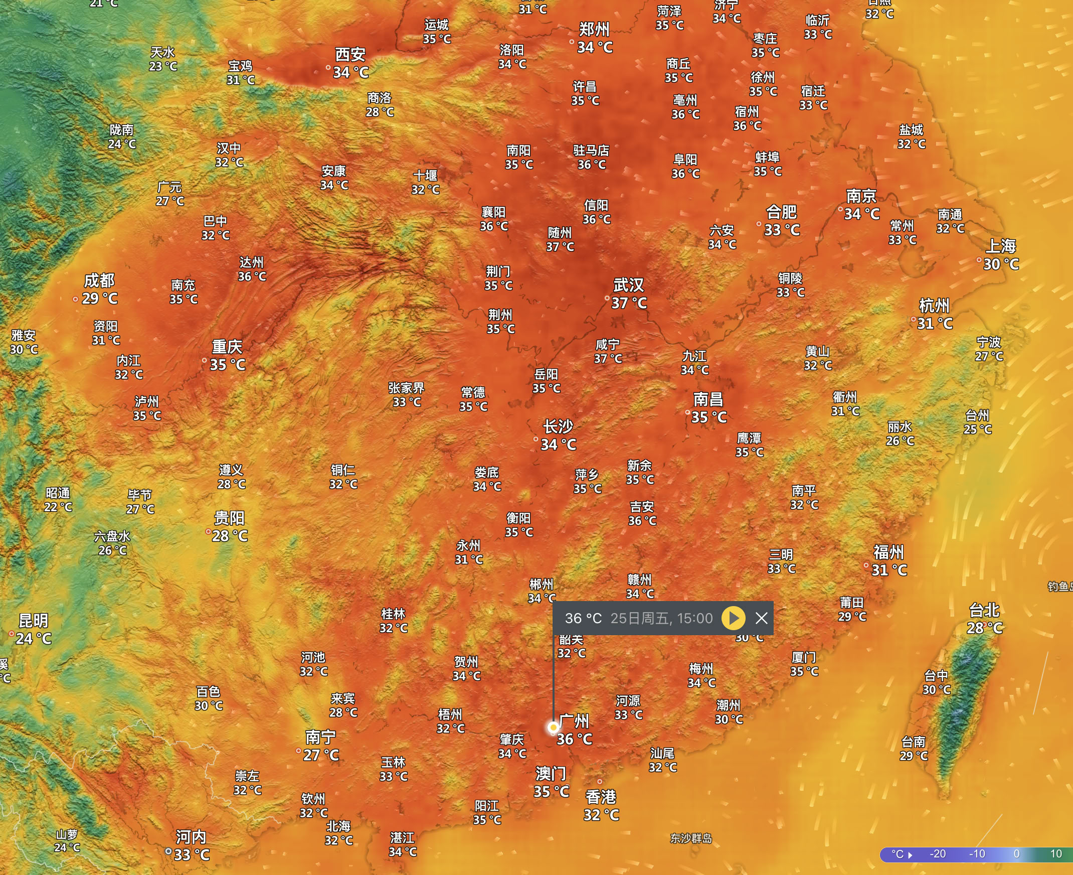今天从北到南一片火辣辣。