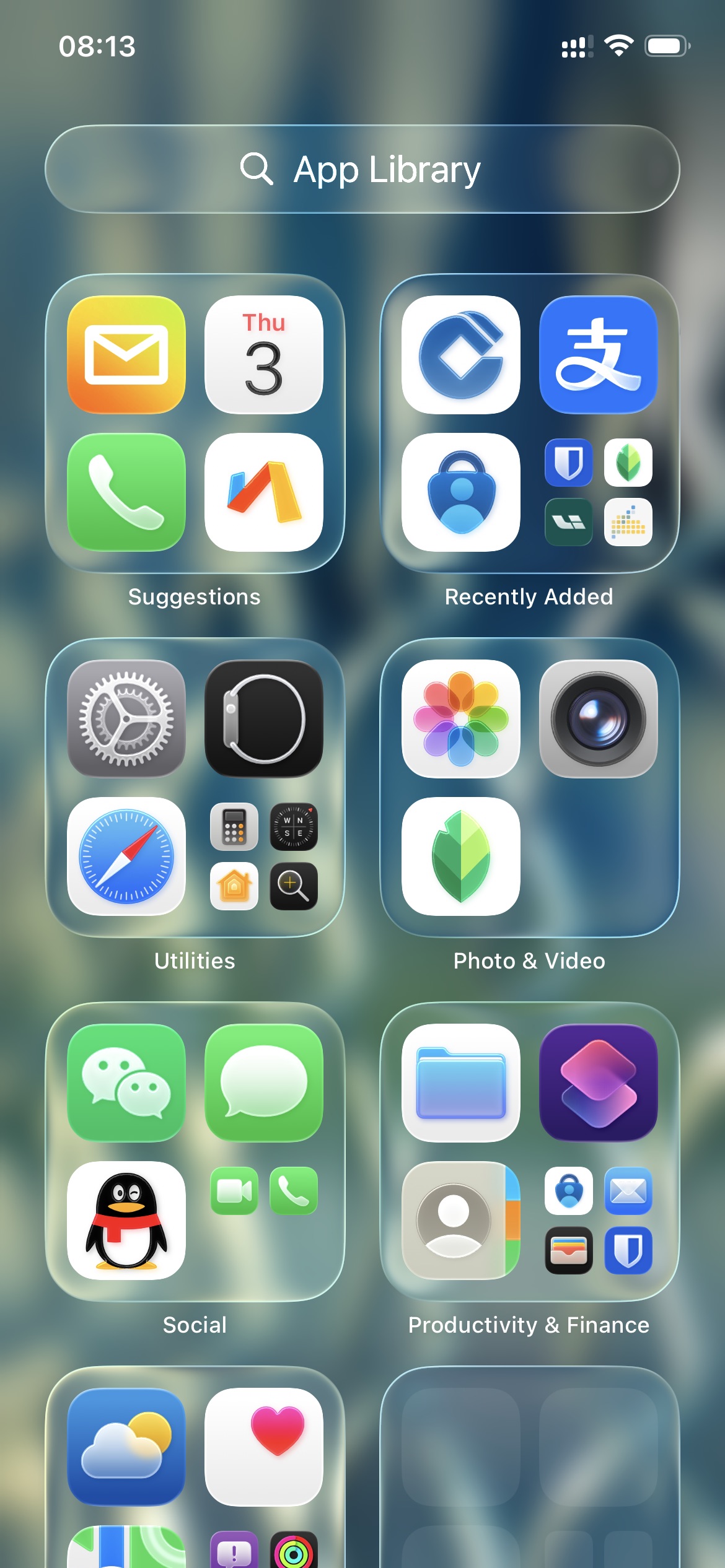 配上合适的壁纸,液态玻璃效果挺精致的,尤其是滑动时的动态变化状态。